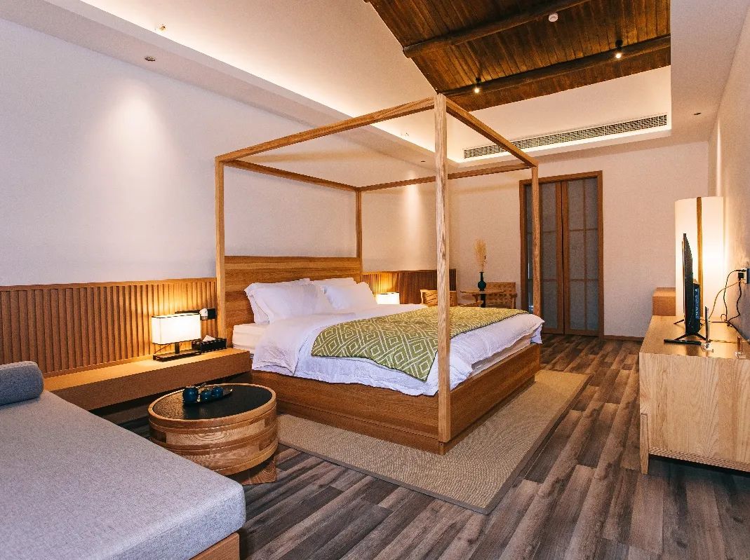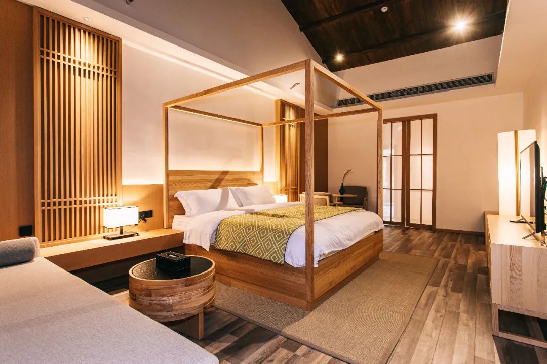 而壽山是最富有美好寓意的大床房,以木質(zhì)天花板為特色讓環(huán)境融合自然,面積約40平方,可住2人,一晚688元起住。