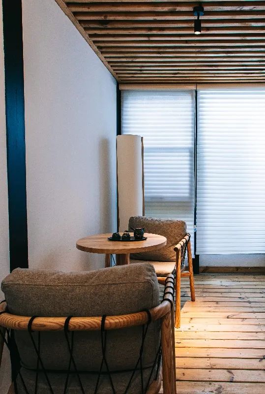 山田雅舍擁有兩個(gè)茶室,下沉式茶室位于山田雅舍的一樓,內(nèi)部設(shè)計(jì)的風(fēng)格延續(xù)了簡約、古樸的理念,既保持了簡約調(diào)性,又讓起居室變得更家細(xì)致。