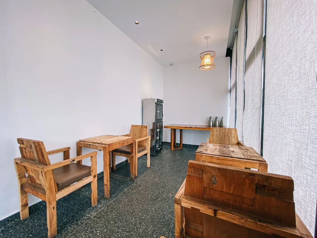 外圍是古樸竹子環(huán)繞,完美的與自然融合在一起,蘊(yùn)含著對(duì)大自然的敬意。即可看透屋外風(fēng)景,又可遮陽擋雨,整體給人輕巧的優(yōu)雅感。后側(cè)便是水吧,可供開水自助~
